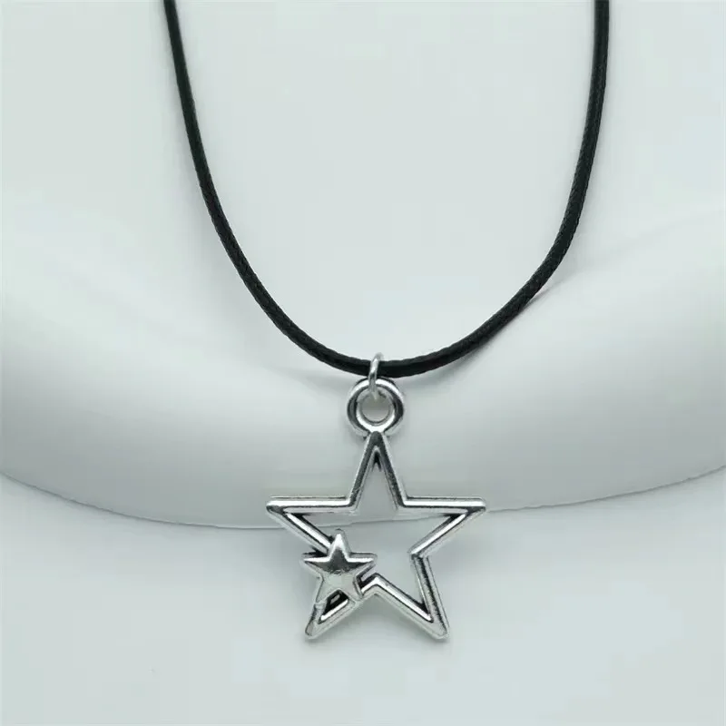 1pcs Vintage Pentagram Necklace Black Rope Necklace Personalized Fashion Alloy Star Pendant Jewelry Party Gift