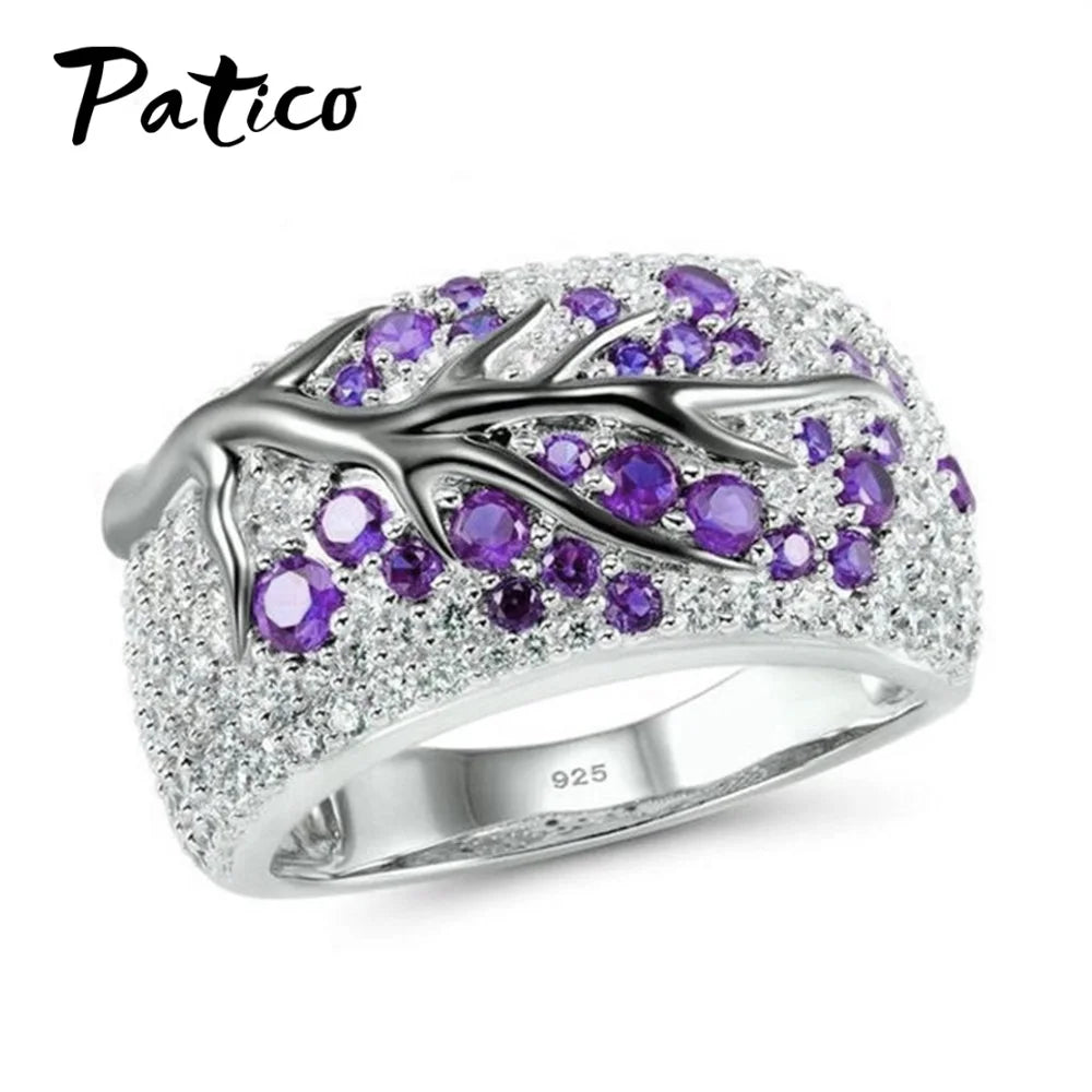 925 Silver Needle Tree Branch Rings Cubic Zirconia For Women Gem Stone Knckle Finger Rings Engagement Wedding Jewelry Anillos
