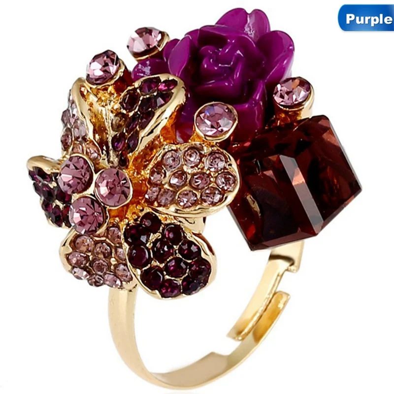 Colorful Crystal Gem Adjustable Opening Rings New Fashion Anti Allergic Resin Flower Ring For Woman Gift